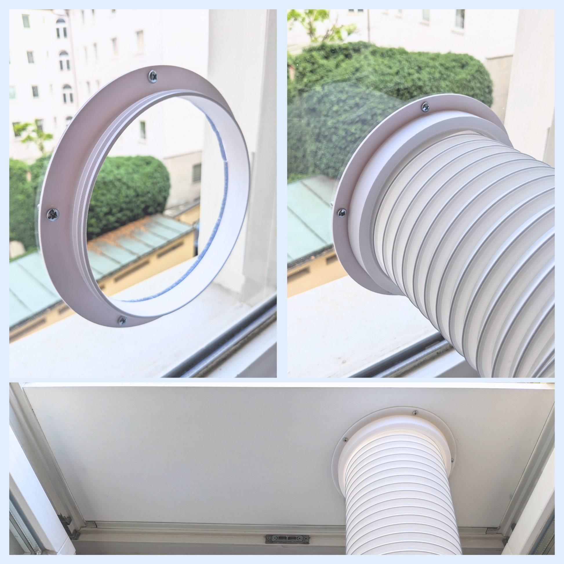 Optimieren Sie die Kühlleistung Ihrer mobilen Klimaanlage. Unser Adapter verbindet Ihren Abluftschlauch sicher mit der Fensterabdichtung, leitet die Hitze effektiv nach draußen und steigert so die Energieeffizienz Ihres Geräts.